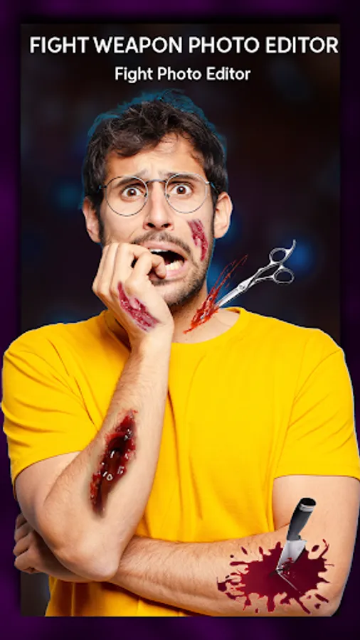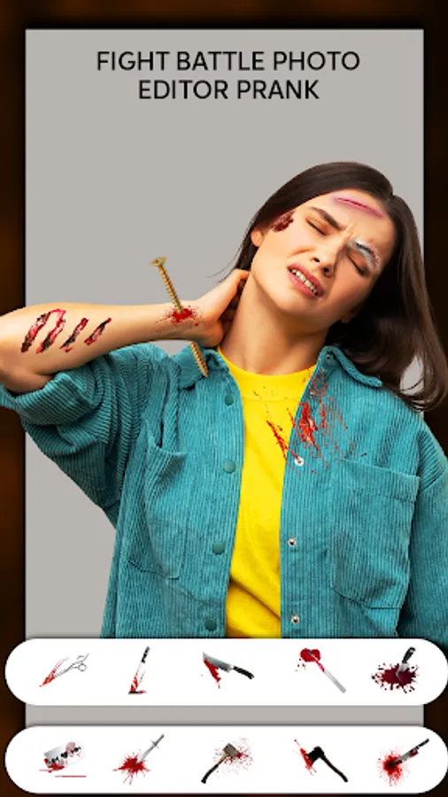 Easily change the size of the sticker with finger touch and convert your👄beauty selfies into extraordinary pics with fight effect photo editor in a matter of seconds. If you want to show self harm to anyone just use fight photo editor with injury prank stickers, don't hurt yourself and don't feel the pain.