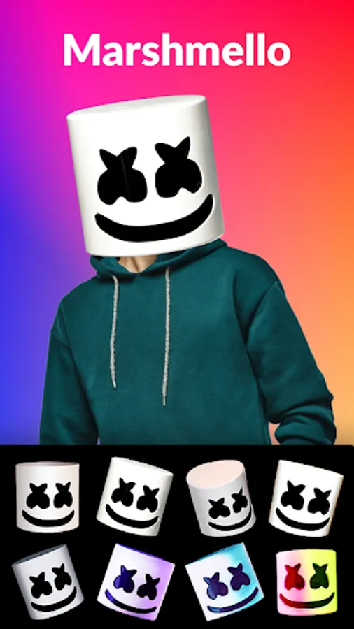 Marshmello Face Mask Photo Editor 2023 is a popular application, include it into your pictures with the help of this photo editor effects and cute stickers!