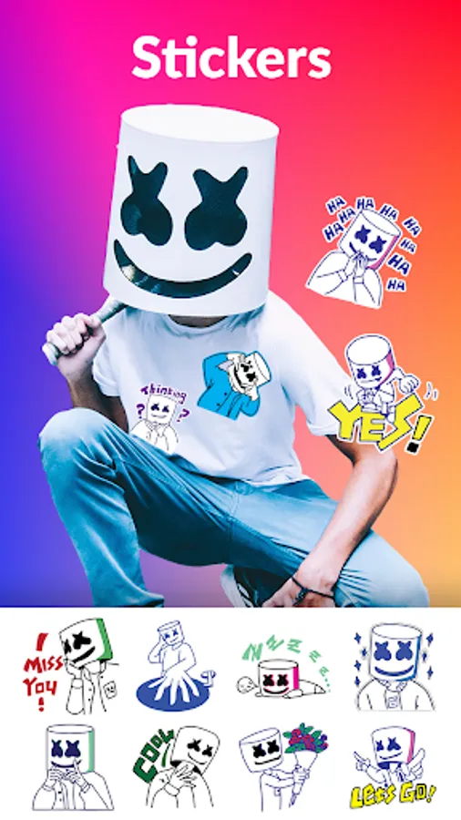 If you're a fan of marshmello songs, show off that great musical taste by incorporating the marshmello photo stickers into your photos!