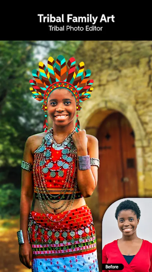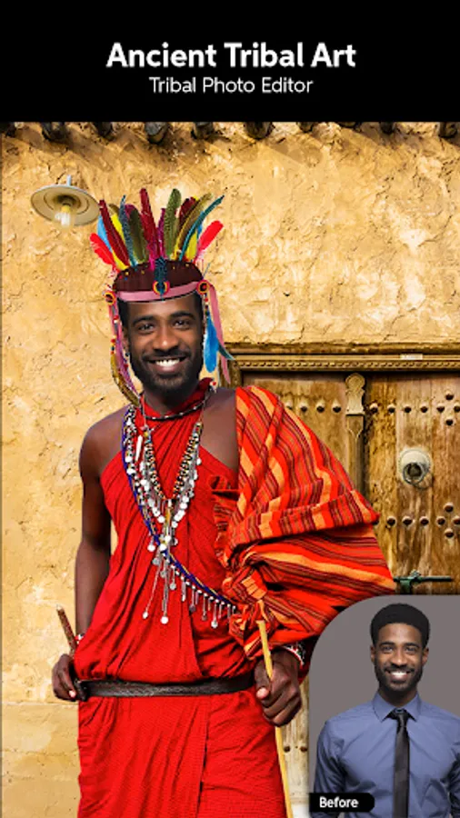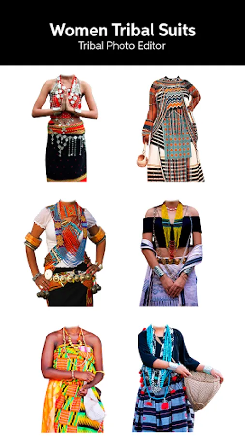 Tribal Photo Editor app which has the tribal suits that captures culture and lifestyle of these tribals through the lenses, in its original form for both men and women. Add the tribal wallpapers and backgrounds along with face color, skin tone effects, tribal stickers to bring back the ancient look to your photos.