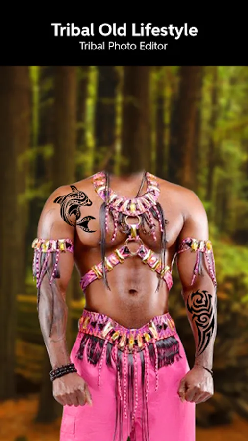 Tribal Photo app which have the men tribal dresses to get the old tribal countries lifestyle along with african culture, indian tradition tribals for both men and tribal boys. Easily, add the extra features like the tribal tattoo wallpapers and backgrounds along with face color, skin tone effects, tribal best tattoo design stickers for men and ancient tattoo designs for boys to bring back a tribal fashion look to the tribal pictures.