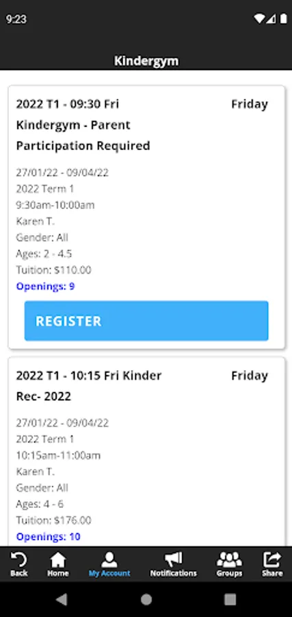The Bounce Gymnastics app allows you to manage your account with ease, register for classes, parties, and special events. You'll also receive important notifications about class changes, closings, registration openings, special announcements, and upcoming events.