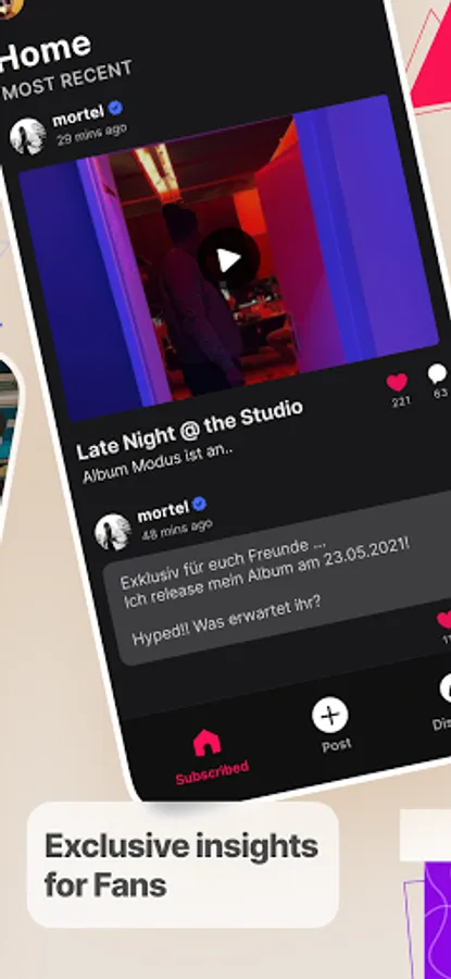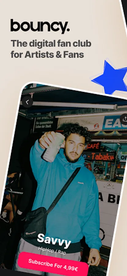 Bouncy is the go-to fan club for Creators. With Bouncy, fans can join their favorite Creator's exclusive fan club on a monthly subscription basis and get exciting insights through various content formats. In return, Bouncy Creators get all the tools they need to share magical moments, perform live, announce & plan activities, and chat directly with their superfans. Bouncy Creators include musicians, influencers and personalities from the entertainment industry, who can show many exciting behind-the-scenes formats due to their high profile. Bouncy is a serious alternative to existing creator platforms and rejects adult content.