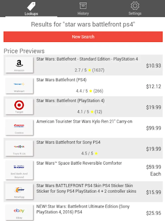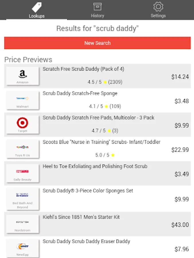 Quickly compare prices of items across the most prominent low-cost retailers, such as Amazon, Walmart, Best Buy, and more. Comparisons can be done by scanning a barcode, or manual entry of either the barcode or product name.