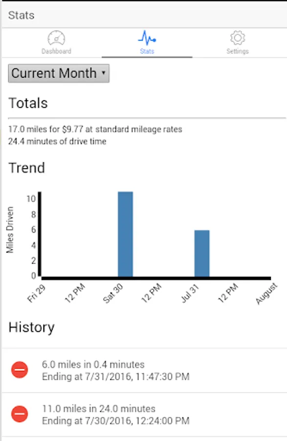 A very simple tool for tracking mileage (total miles traveled) on a vehicle. Entry of mileage is available in either timed or manual modes.