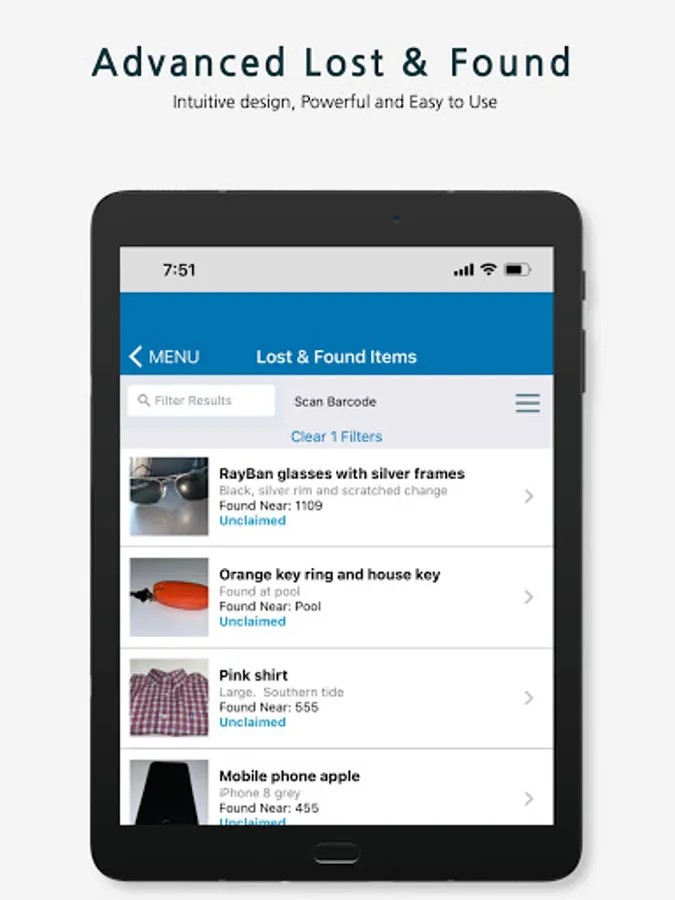 The BOUNTE Venue mobile app is used to capture photos of lost items, add/edit lost items and manage the lost items in the lost & found for hotels and venues. This simple-to-use app can be used by hotel and venue staff to capture photos of items found quickly. The advanced technologies built into this mobile app makes it a powerful addition to the BOUNTE lost & found platform. Artificial intelligence (AI) auto-labels items when captured by the camera to increase data entry efficiency and accuracy. Saving time while providing keyword searches and reducing the risk of wrongly labeling items will ensure guests and customers will get reunited with their lost items sooner. The integrated geolocation capabilities will auto-assign a location on a map and store the latitude and longitude with accuracy within feet. Built with hotels and venues in mind, this app provides staff members with a powerful and easy to use image capture and lost & found mobile capability. NOTE: This mobile app requires a login to be set up by a Venue administrator to access its features. The personal lost & found features have been deprecated and will no longer be supported.