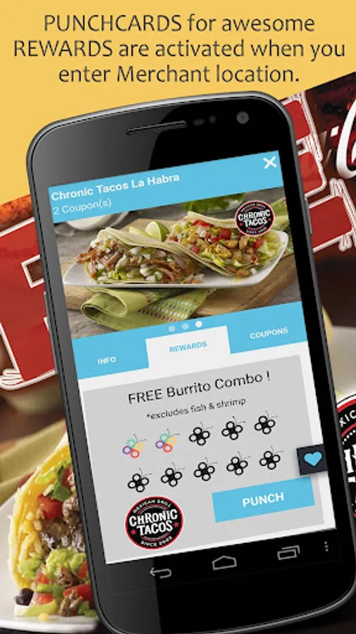 You can also join Reward programs from those same local merchants, using digital punchcards, all organized in the comfort of your personal mobile device.