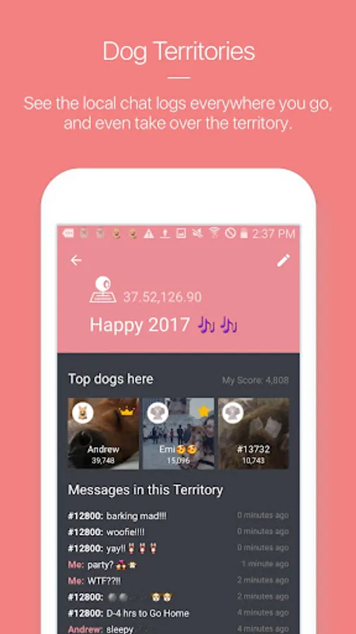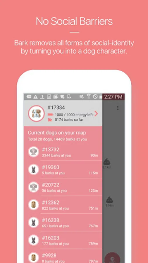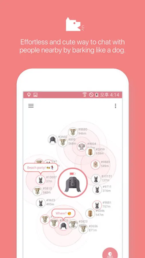 Bark transforms people nearby into fun barking dogs. Every user chooses one of the 8 different dog breeds and chats with other barkers by communicating like dogs.