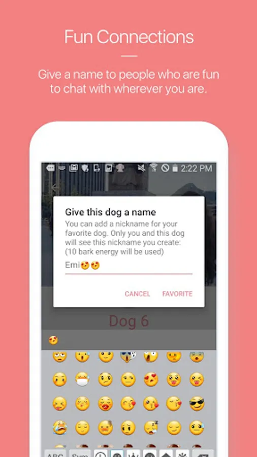 * Simply bark at each other within a 1 mile radius by pressing the bark button.