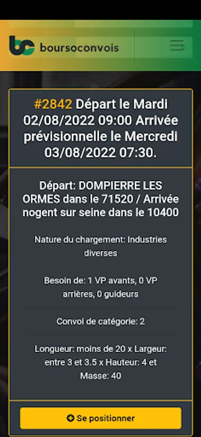 The boursoconvois application is reserved for Pilots & Guiders of exceptional convoys registered on the boursoconvois.com networking platform.