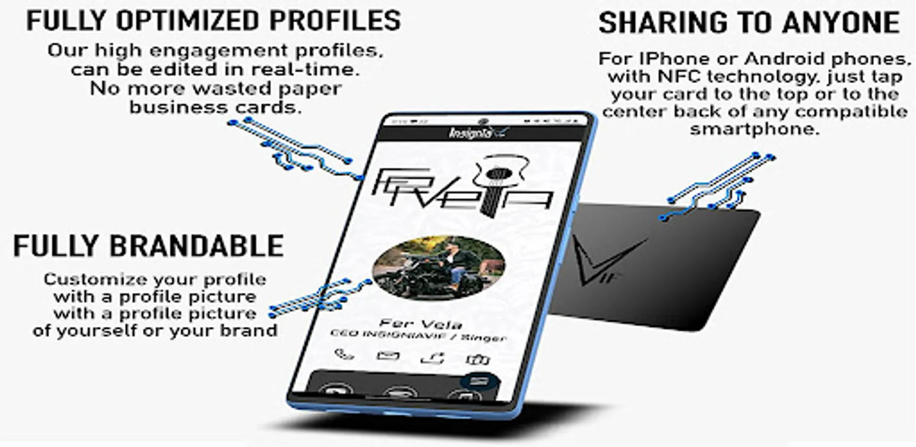 Introducing Boutme TAPCARD, the NFC card that guarantees an unforgettable first impression! This is not your ordinary business card. With Boutme TAPCARD, you can go beyond the limitations of traditional cards and share more than ever before. Customize your card to showcase exactly what you want in a truly unique way. Not only is it environmentally friendly, but it also eliminates the need for wasteful business cards, flyers, and notes. With our easy-to-use app, you can personalize your card even further by directing customers, friends, and colleagues to specific websites or connecting them to your social media profiles such as Instagram and LinkedIn.