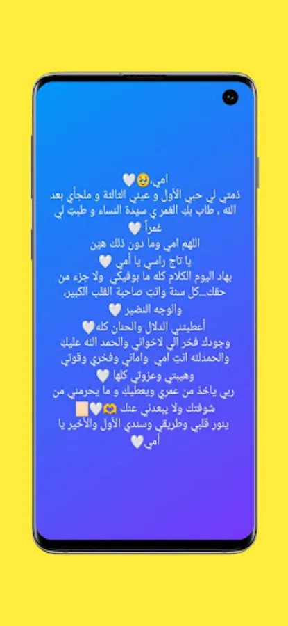 The application of "Expressions of the Mother" is your ideal companion to express your feelings towards your mother in a touching and profound way. The application provides you with a variety of phrases and expressive words that touch your heart and embody your love and gratitude for them. Whether you're looking for an SMS or want to send an expressive audio or video message, the app offers you the perfect means of emotional connection with your mom. In it, you will also find a collection of unique frames and stickers to give your messages a beautiful artistic touch. Let the application help you express your feelings in an inspiring and unique way, and make your relationship with your mother stronger and deeper.