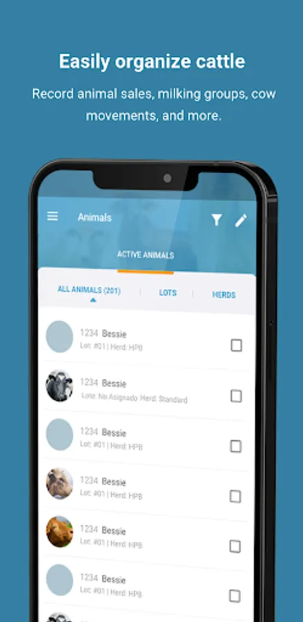 • Organize cattle into a "herd" and "lot" to control movement and reports