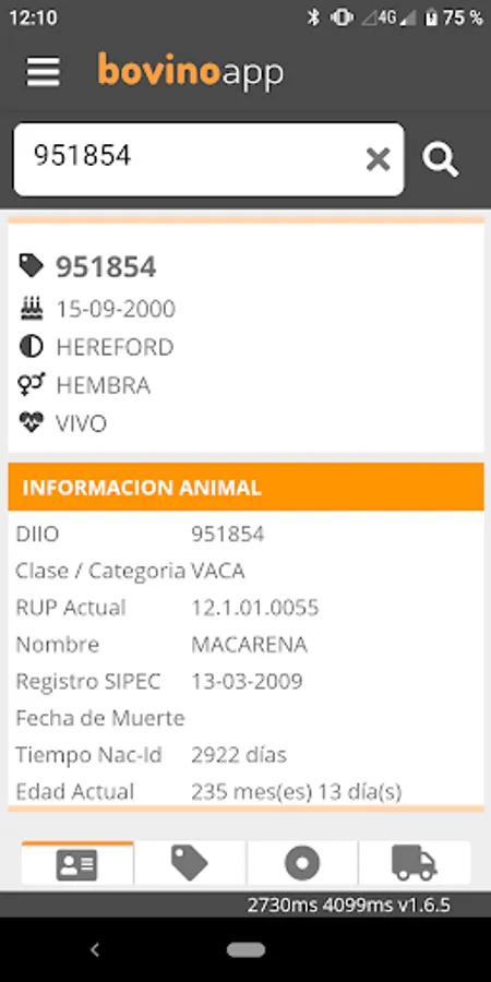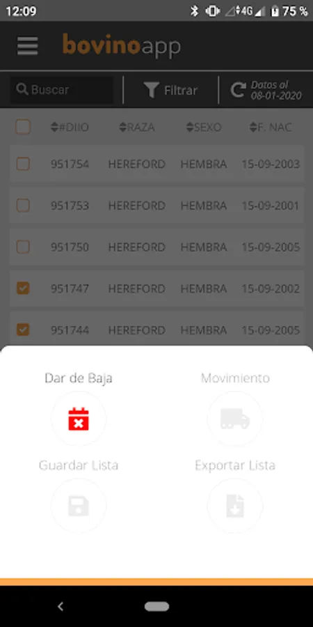 Through BovinoApp you can manage the traceability of your animals and perform the tasks of "Deregistration" in SIPEC individually and massively and Generate Movements.