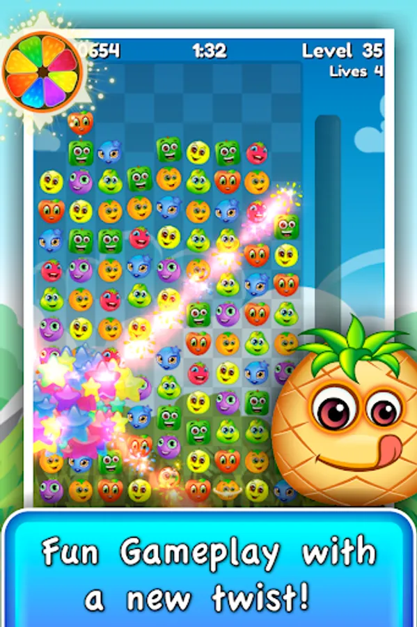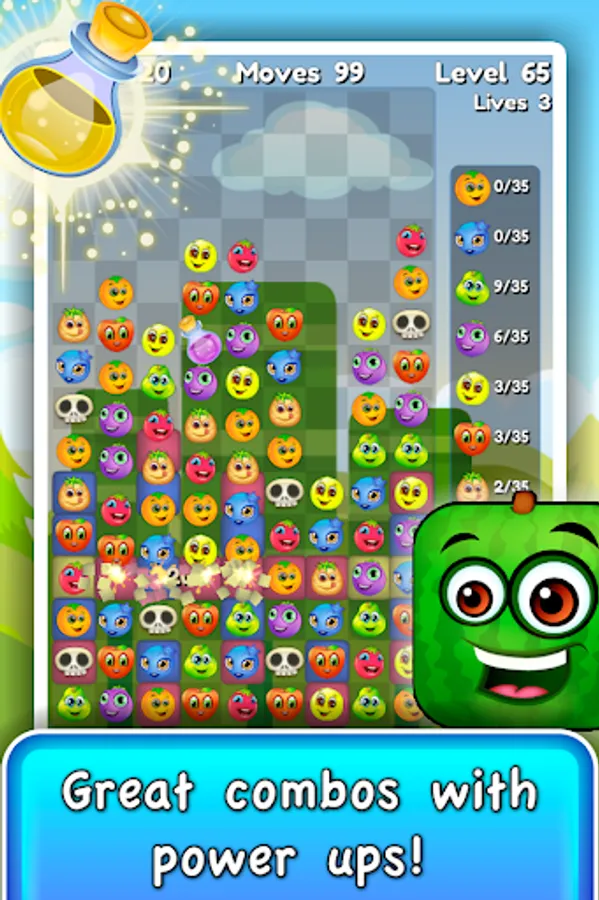 Match juicy combinations of fruits before they overflow in your new match-3 adventure: Frenzy Fruits!