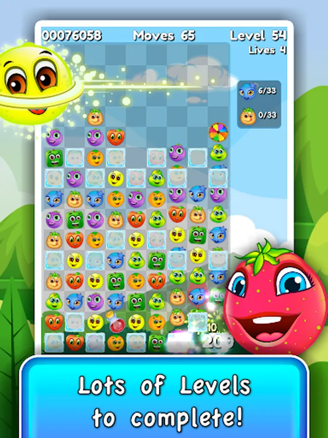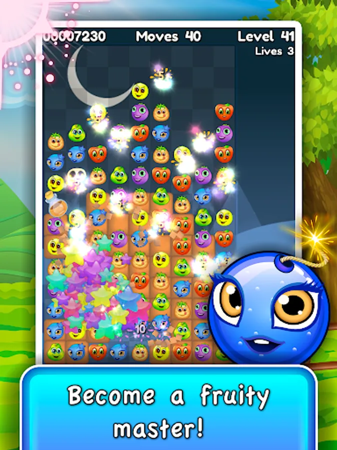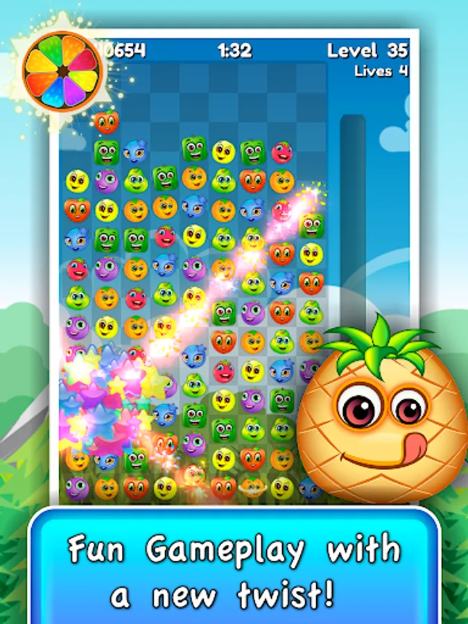 Match juicy combinations of fruits before they overflow in your new match-3 adventure: Frenzy Fruits!