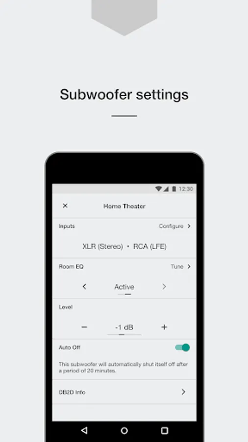 This easy-to-use app will help you to set up and control your DB Series subwoofer. The app includes guides on positioning and connecting your subwoofer to get you started, plus an automatic calibration and equalization system that, working in conjunction with the microphone in your phone, will help you get the best possible sound from your subwoofer in minutes. Just follow a few simple instructions and your subwoofer’s sound will be perfectly tailored to your room.