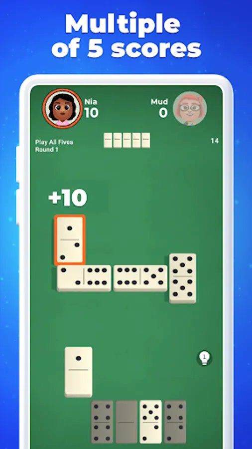Beginner players can enable hints in our Dominoes app and make learning domino fun and fast! The game is played up to100 points.