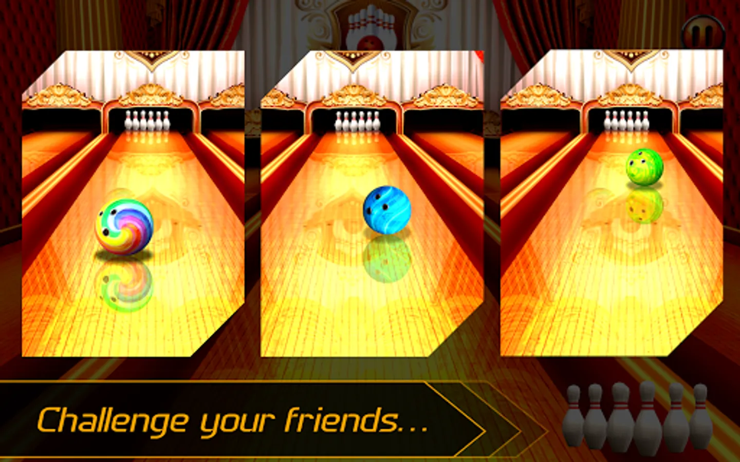 Multiplayer mode of this bowling game app enables us to play with our friends.