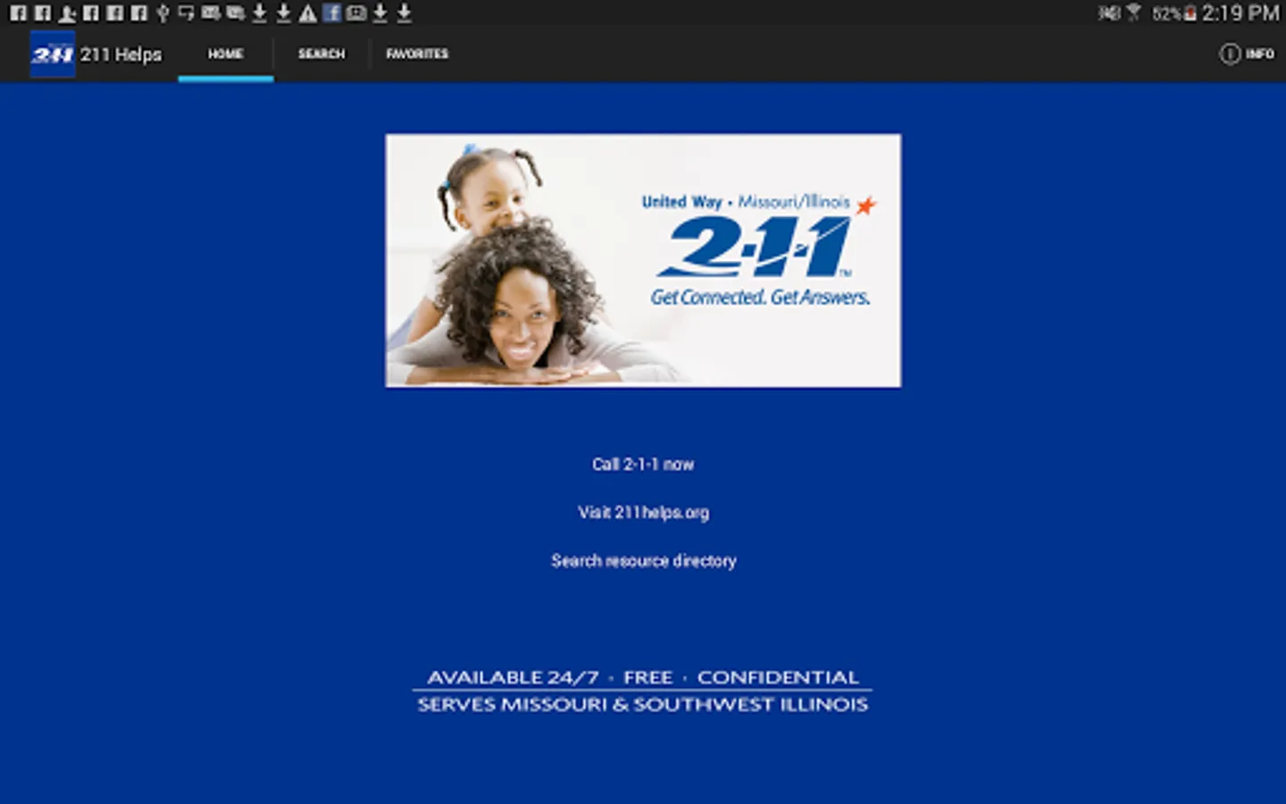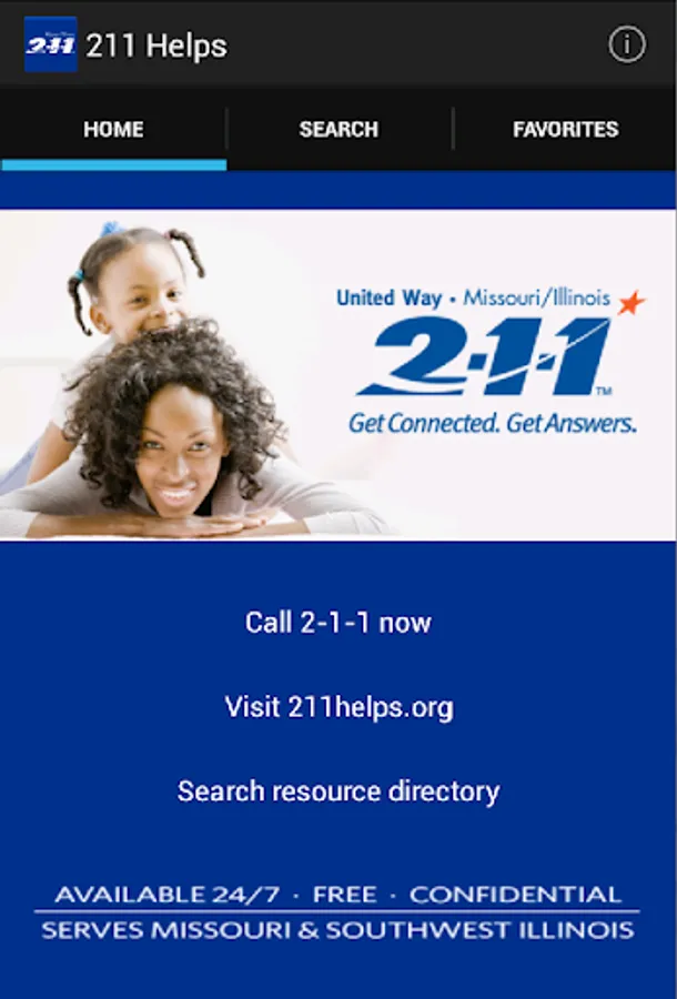 Use this United Way 2-1-1 app to get connected to basic needs, physical and mental health resources, jobs programs, help in a disaster, support for seniors, people with disabilities, children, youth, families, and more in Missouri and Southwest Illinois.