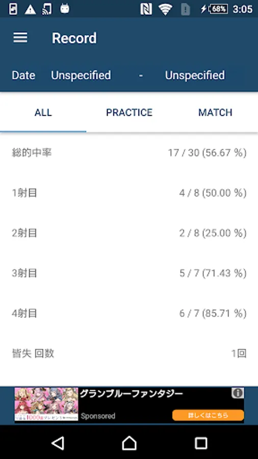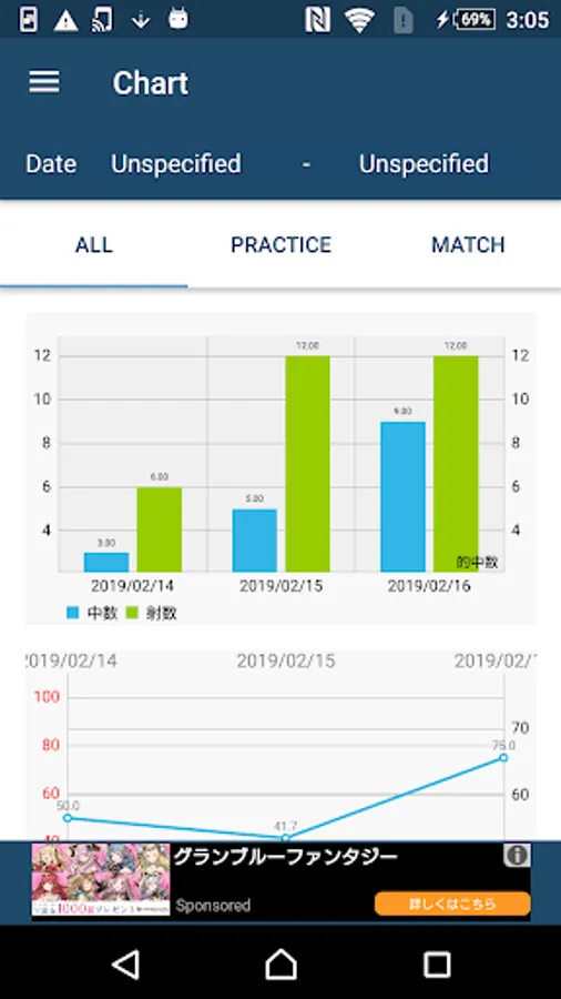 Browse chart data filtered by practice or match.