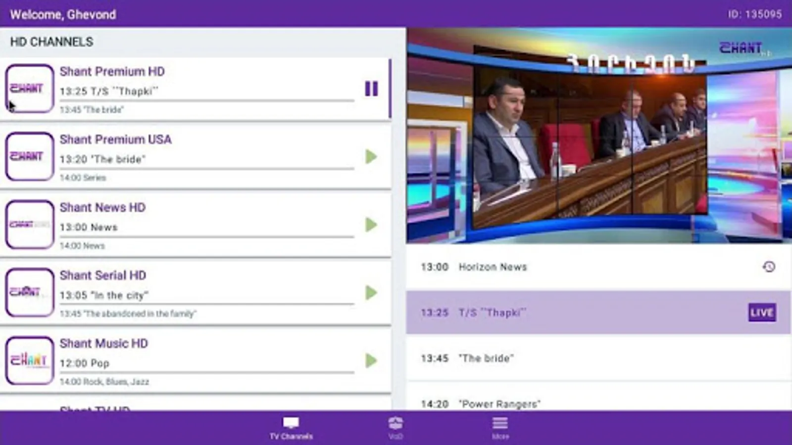 If you would like to watch all the channels and the VOD of Shant TV on your TV set, just download this app into the Smart Box and follow the instructions.