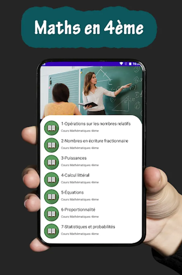 • Cette application Cours Maths 4ème gratuite est une bibliothèque dynamique alimentée par les meilleurs sites éducatifs spécialisés dans les cours de Maths.