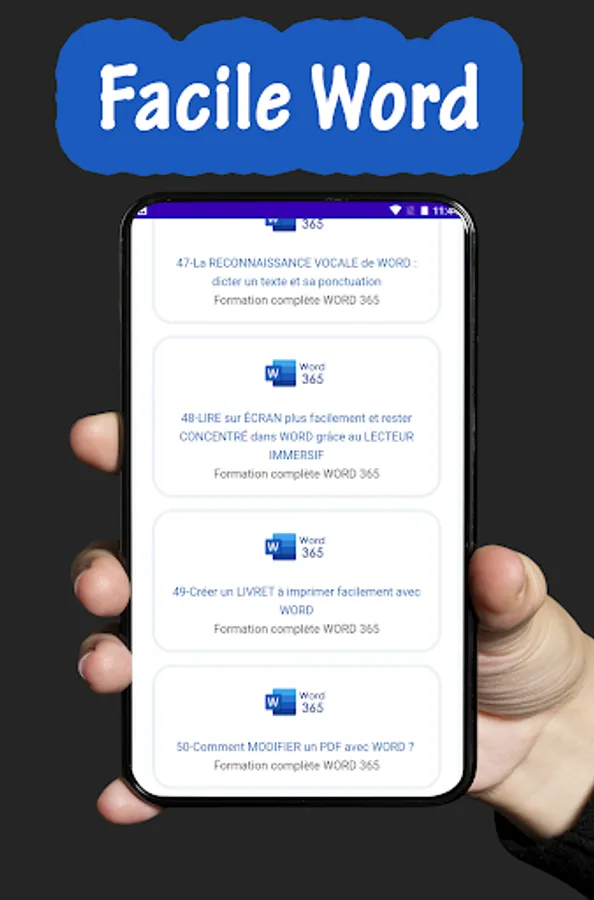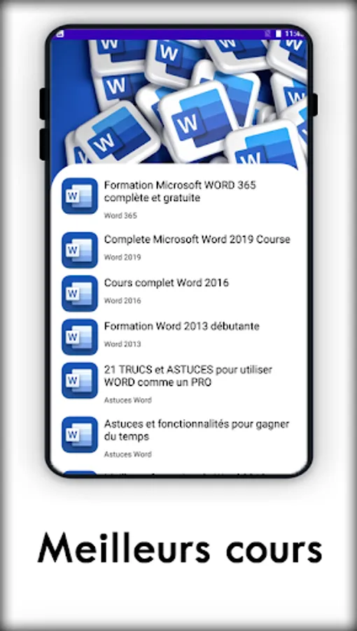 • Cette application Cours Quiz Word gratuite est une bibliothèque dynamique alimentée par les meilleurs sites éducatifs spécialisés dans les cours de Word.