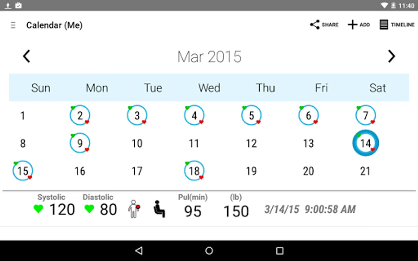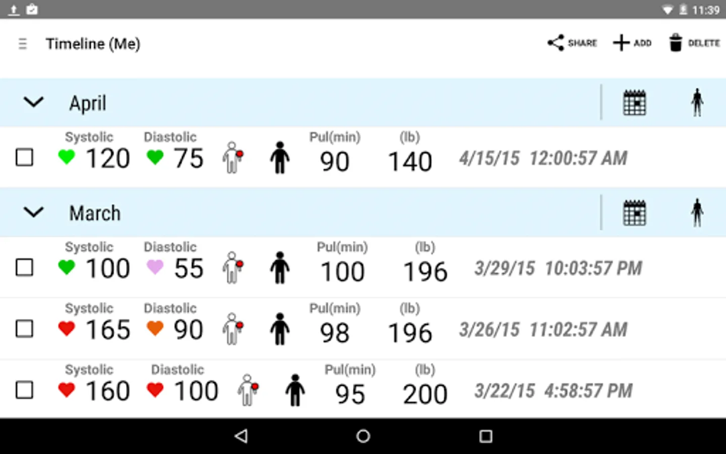 --No more paper record. Record your BP, pulse, weight all in one place. Add comments, tag mood, weather, activity for future reference.