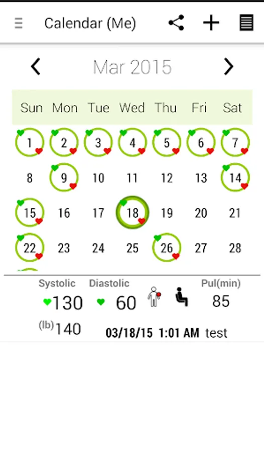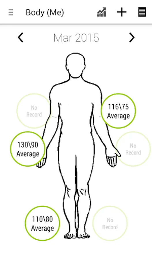 --View your record as a list , calendar, and body location. View monthly average based on location.