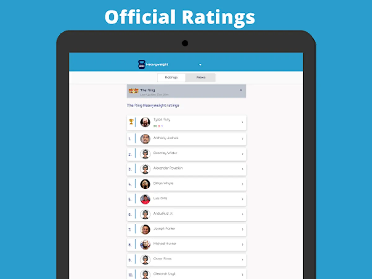 Enjoy nonstop everyday boxing updates from news, clips, fights date and time and broadcasters details. Listen to your favourite experts through interviews in youtube clips and podcasts. make your analysis by looking at boxers tale of the tape ahead of fights. Get the latest rankings from all governing bodies, like WBC, the ring magazine, WBA, IBF and WBO. Be the first one to know the latest in the boxing universe.