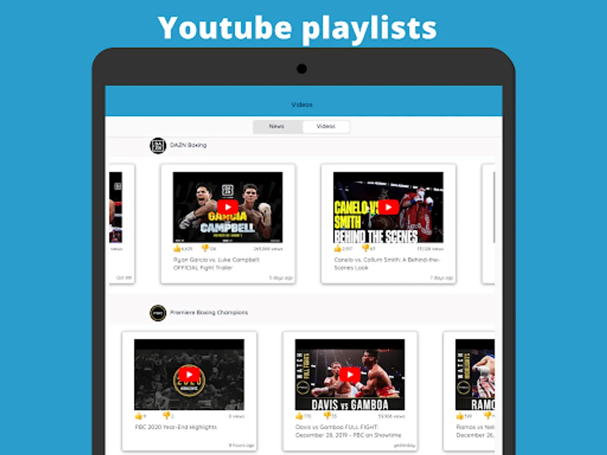 You can chose your favourite division be it featherweight, lightweight, welterweight or heavyweight, all of it we got you covered. We have playlists from MatchRoom Boxing, TopRank Boxing, Sky Sports Boxing, Dazn Boxing, Golden Boy Boxing and Premiere Boxing Champions(PBC). We have schedules from all the world's top promoters all for you in one place.