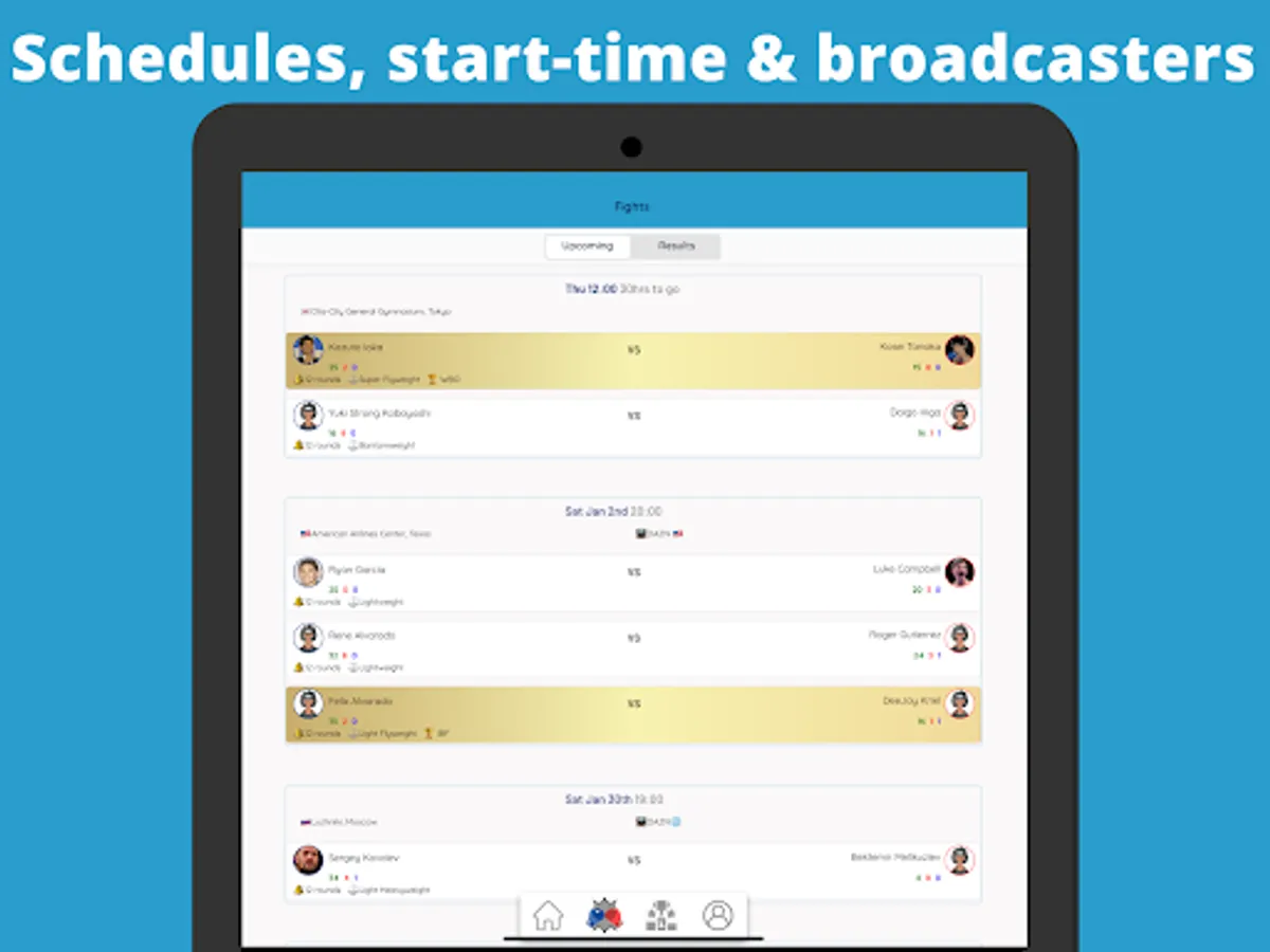 - Stay in touch with what matters in Boxing with access to TV schedules for fight cards around the world so you never miss a punch
