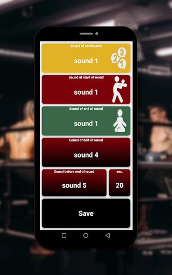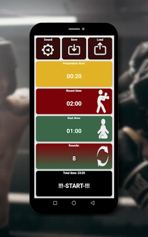 ...Simply simple....just install Boxing timer (stopwatch), set up, click and fight or train:-)