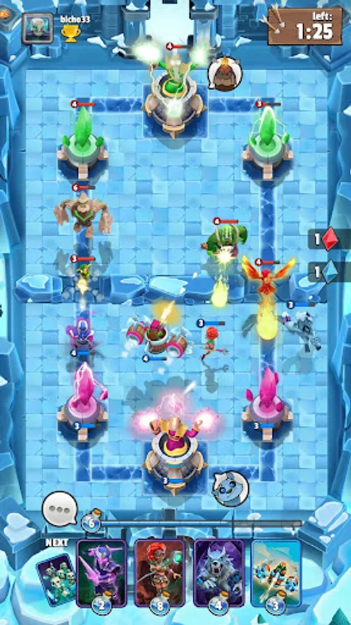 The main Wizard tower, two crystals towers and some battle troops are the only defenses you have to clash with your enemies and establish control over the Arena Royale. Deploy your battle troops and cast your spells to defeat enemy battle forces!