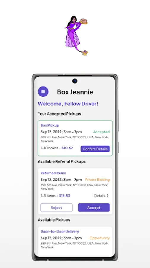 Box Jeannie is a technology-driven on demand premier concierge app that provides the service of online return processing, recycling, and personal delivery. As a driver, you will have a 4–6-hour window to fulfill people’s wishes and organize your day.