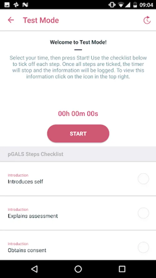 You can test your performance against a timed pGALS checklist and keep a record of your progress.