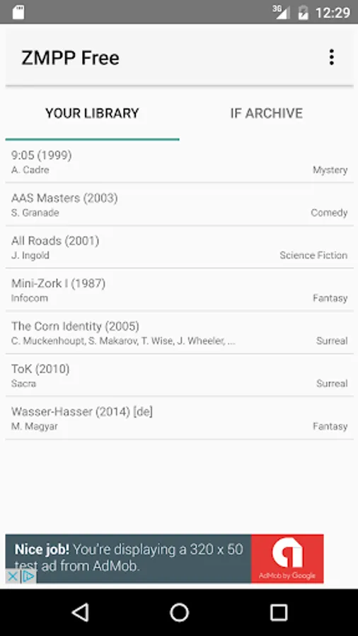 Download publicly available Interactive Fiction from the Interactive Fiction Archive with the built-in search tool, download them from other websites or transfer them from your computer to your device's SD card. ZMPP can automatically recognize a large number of popular classic and modern works of Interactive Fiction.