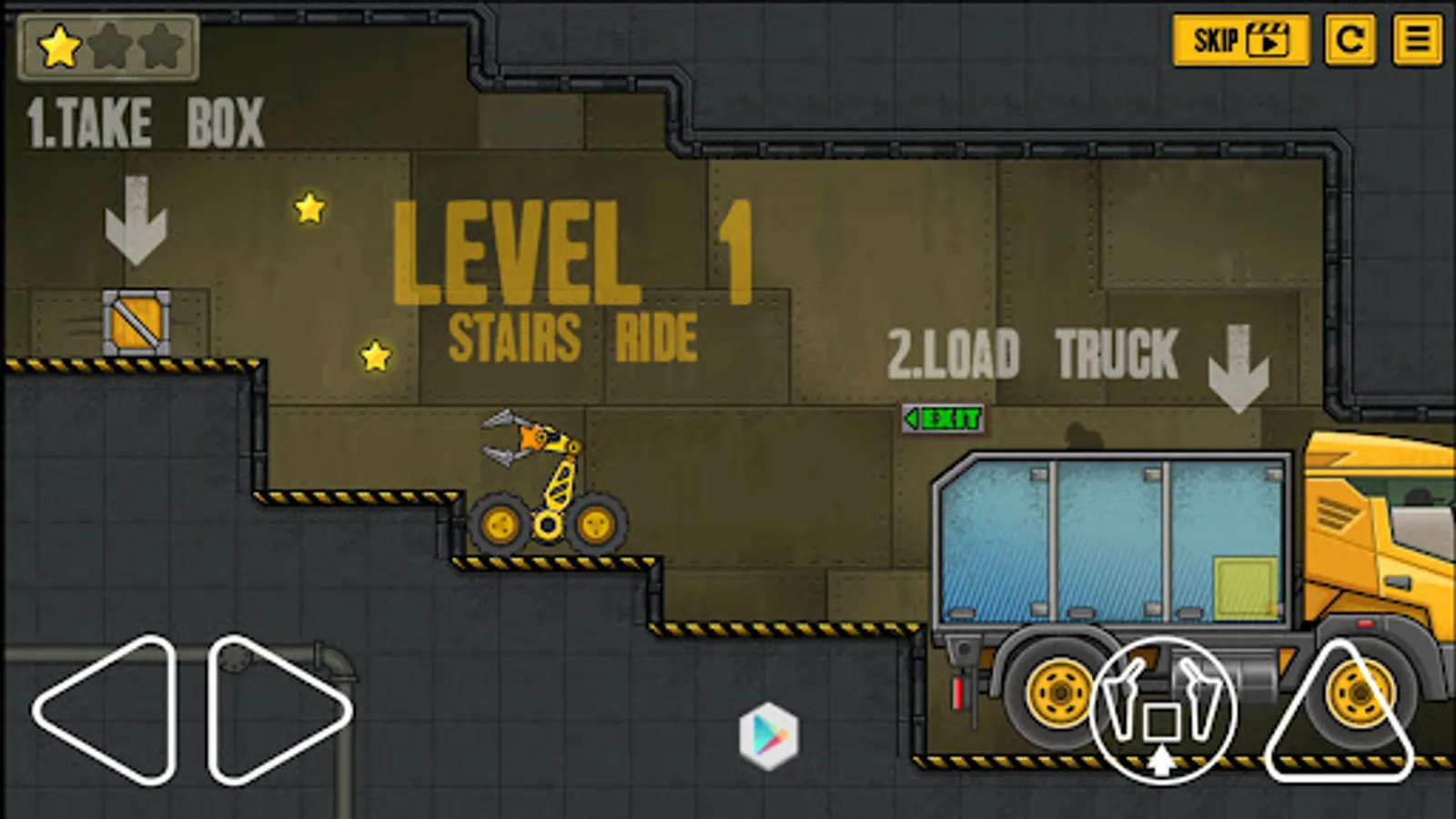 In the game BoxRob, your goal is to use your forklift's flexibility to load cargo onto a truck.