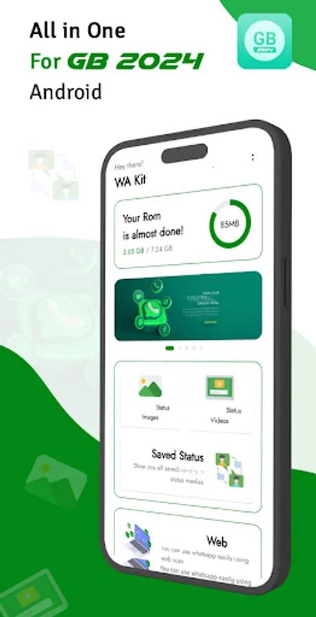 All In One GB WhatsApp Status Saver ToolBox for GB WhatsApp Messenger Helps You to Download & Share Your GB WhatsApp Status Without Any Annoying Ads on Other Social Media Apps.