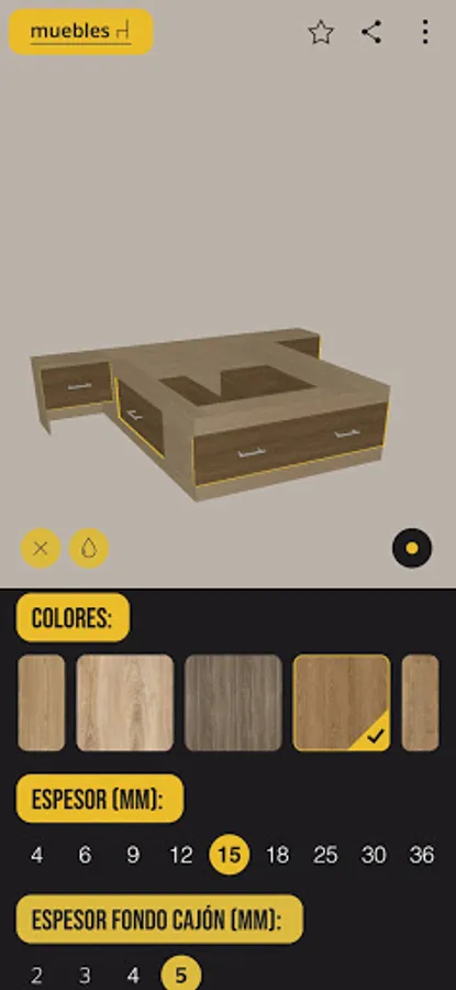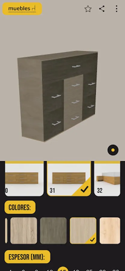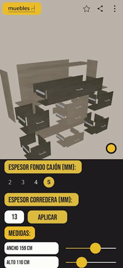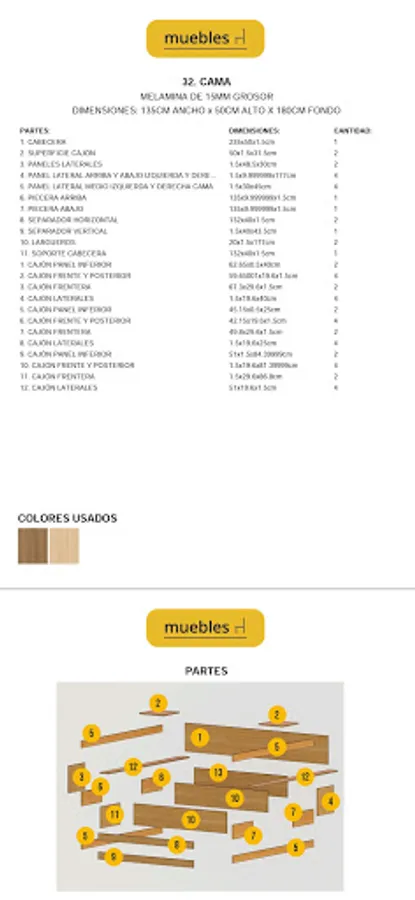 With prime furniture you have 35 pieces of furniture available: desks, beds, drawers, etc., in which you can modify the width, height, depth, thickness, thickness of the slide, thickness of the bottom of drawers, among other options.
