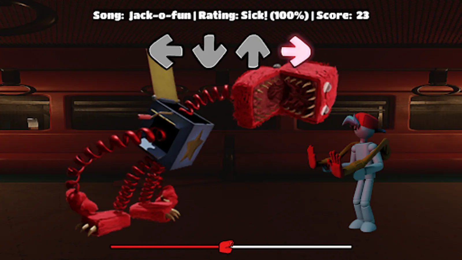 With Rainbow Friends FNF character test you can re-create Playtime Boxy Boo FNF Cat animation with the sound effect and awesome animation set. In Friday Sticky Rainbow Friends FNF, you need to use Playtime Boxy Boo FNF Mod to create a unique hit. Using only 4 buttons and a branded track, you create a unique track in a musical battle.