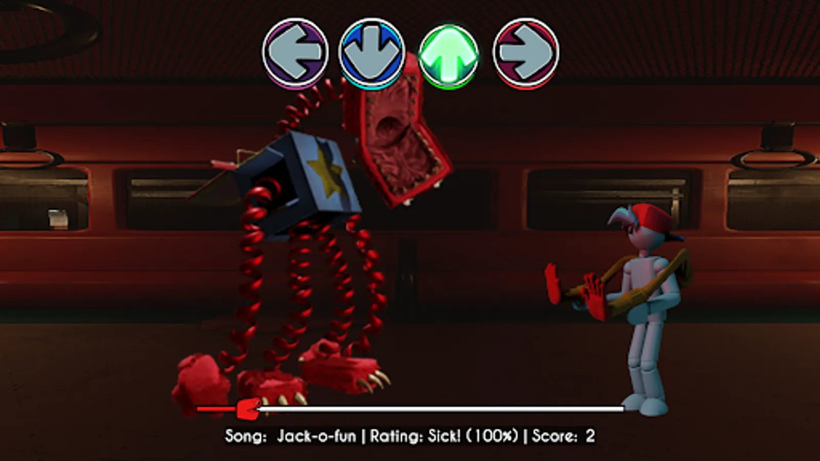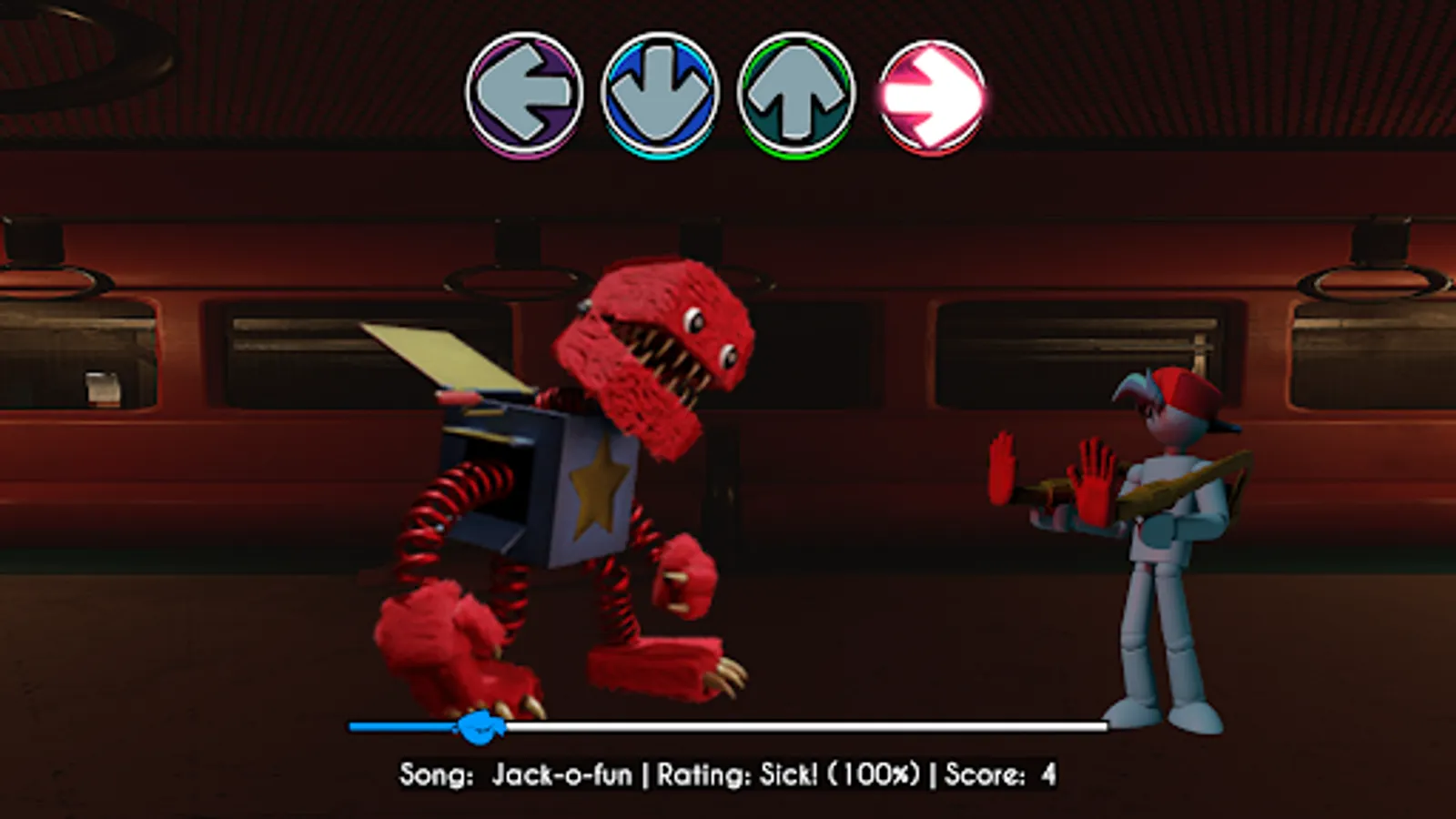 With Rainbow Friends FNF character test you can re-create Playtime Boxy Boo FNF Cat animation with the sound effect and awesome animation set. In Friday Sticky Rainbow Friends FNF, you need to use Playtime Boxy Boo FNF Mod to create a unique hit. Using only 4 buttons and a branded track, you create a unique track in a musical battle.