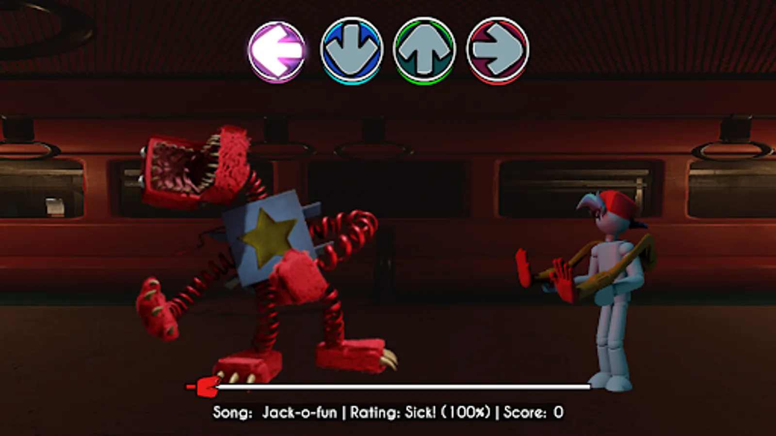 This game works perfectly offline, You can play it using four buttons to create your own unique hit to the music of Rainbow Friends FNF Mod Character.