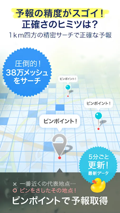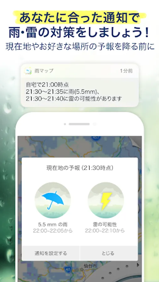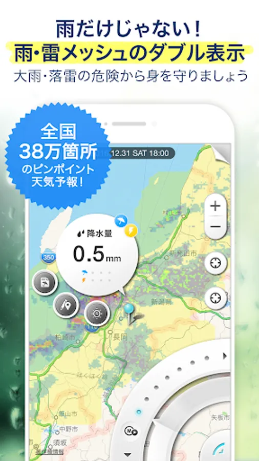 本アプリで表示される気象情報は予測になり、ゲリラ豪雨や急な天候悪化などは予報できない場合があります。