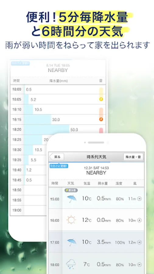 ※今後のバージョンアップでは、雨が降っている場合は、5分毎の降水量も確認できます。
