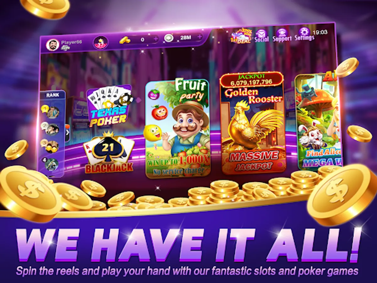 All Fantastic Slots and Poker games like Blackjack of Texas Hold'em in one application!