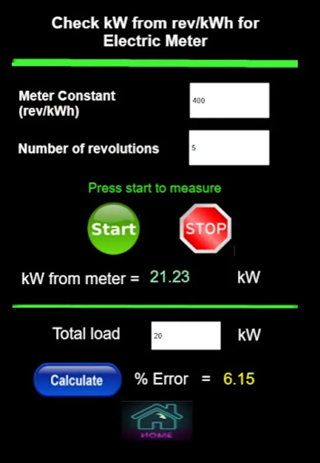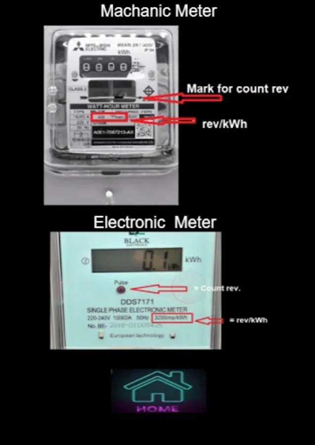 Check the accuracy of the power meter is easy. By entering the name plate of the meter constant press the start button until the meter disc rotates it around as needed and press stop. Then we can get kW of measure