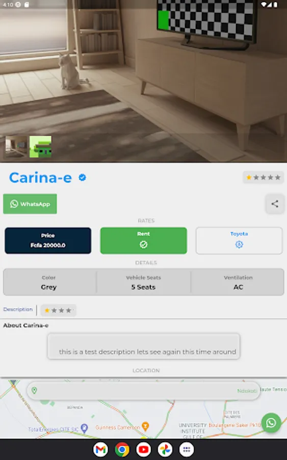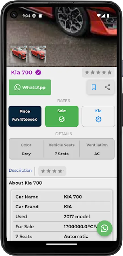 The app also includes useful features such as a click to WhatsApp messaging system that allows users to communicate directly with car owners or companies regarding inquiries or negotiations.