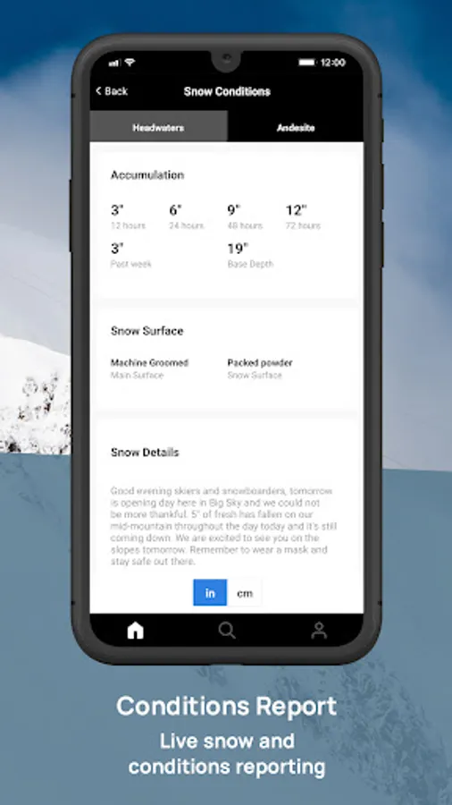 Get Big Sky Resort information and updates at your fingertips. Use the app to access real-time updates, promotions, outlet information, and more.